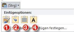 Kopieren Sie einen Wordtext und klicken Sie mit der rechten Maustaste, um ihn einzufügen - Sie erhalten mehrere Einfügeoptionen im Kontextmenü bzw. über die Einfügeoptionen direkt nach dem Einfügen. Je nachdem, ob der Text aus der gleichen oder einer anderen Datei stammt, können Sie wählen: