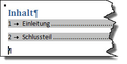 In einem Inhaltsverzeichnis werden die beiden Pseudo-Überschriften "Vorbemerkungen" und "Hauptteil" auch dann nicht berücksichtigt, wenn in den Optionen die Verwendung von Gliederungsebenen aktiviert wurde. |