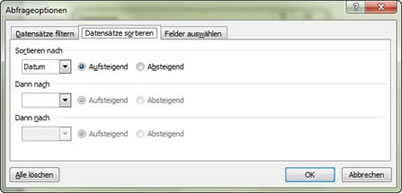 In den Abfrageoptionen gibt es maximal drei Sortiermöglichkeiten.