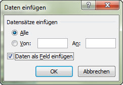 Achtung! Ohne die Option "Daten als Feld einfügen" ist der Vorgang einmalig, erzeugt keine Feldfunktion und kann später nicht mehr angepasst oder geändert werden.