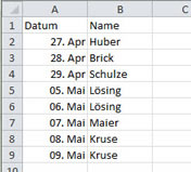 Hinter \d geben Sie die gleiche Excel-Arbeitsmappe an. Es folgt \s "SELECT ...;" mit nur einem Feld: Datum. |