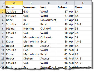 2. Schritt: Daten aus dem Tabellenblatt "Kurs" übernehmen