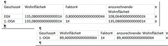Das Gleiche wird für den Faktor und die anzurechnende Wohnfläche formatiert: