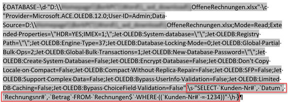 {[...] \s "SELECT Format (`Datum`, 'dd.mm.yyyy') as Datum, `Rechnungsnr#` as Rechnung, Format (`Betrag`, '#,##0.00 €') as Betrag FROM `Rechnungen$` WHERE ((`Kunden-Nr#` = {MERGEFIELD KundenNr}))" \b "16" \l "23" \h}