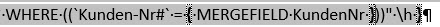 Der Teil hinter "WHERE" muss jetzt so aussehen: | WHERE ((`Kunden-Nr#`= {MERGEFIELD KundenNr}))" \h} |