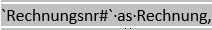 Der Spaltenname "Rechnungsnr#" als "Rechnung"