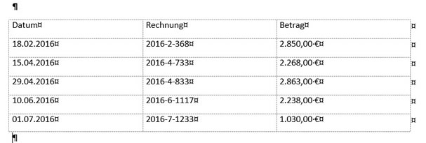 Drücken Sie wieder F9 und dann ALT+F9. Jetzt sollte Ihre Tabelle so aussehen: