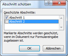 Wählen Sie, welcher Abschnitt geschützt werden soll und welcher nicht - in meinem Beispiel wird der erste Abschnitt geschützt, der zweite bleibt ungeschützt.
