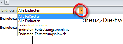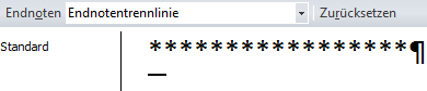 Den Auswahlpfeil neben "Alle Endnoten" aufklappen und die "Endnotentrennlinie" auswählen. Sie wird im Text angezeigt. |