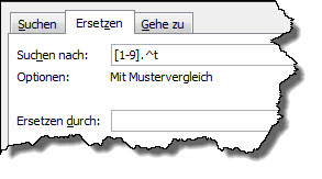Das Feld "Ersetzen durch" lassen Sie leer. Klicken Sie auf "Alle ersetzen", um die Ziffern zu löschen.