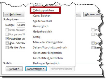 Das "^t" ist das Symbol für einen Tabsprung und wird entweder getippt oder mit Klick auf "Sonderformat - Tabstoppzeichen" eingefügt. |