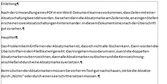 In Dokumenten, in denen jede Zeile mit einer Absatzmarke abgeschlossen wurde, müssen Sie zuerst eine Analyse machen, bevor Sie sich an das Löschen wagen können: