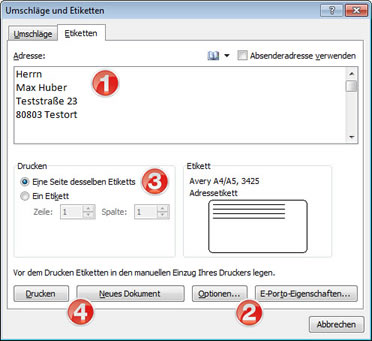 In den Büros üblich ist zum Beispiel der Etikettenbogen Avery Zweckform 3425 (der hier nur als Beispiel dient - die Änderungen funktionieren für alle Bögen gleichermaßen!).