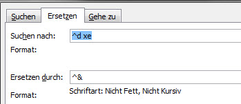 Das Ziel ist, dass alle Einträge in den XE-Felder normal formatiert sind und der Index damit ebenfalls ohne Format erstellt wird.