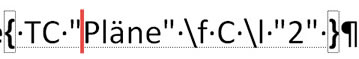 Stellen Sie den Cursor im Dokument in das TC-Feld hinter die Anführungszeichen und vor den ersten Buchstaben von "Pläne". |