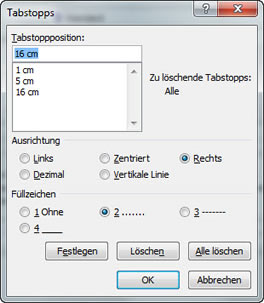 Der Tabulator soll später in das Inhaltsverzeichnis übernommen werden.