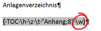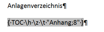 Zwei Inhaltsverzeichnisse unterschiedlich formatiert: Anlagenverzeichnis