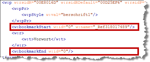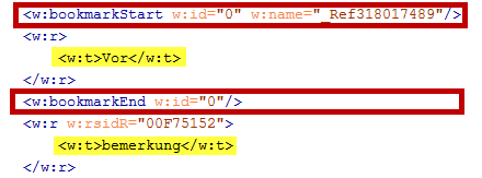 Mit einem Querverweis wird ein "Bookmark"-Tag gesetzt; die _Ref-Nummer entspricht der Nummer, die im Querverweis verwendet wird.