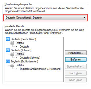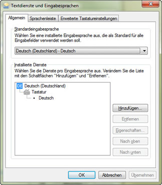 Unter "Windows-Startmenü | Systemsteuerung | Tastaturen und Eingabemethoden ändern" kommt man in den Dialog "Region und Sprache". Dort auf das Register "Tastaturen und Sprache | Tastaturen ändern". |