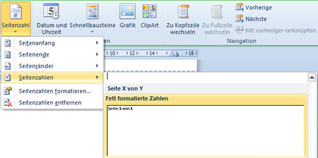 Sie können zurückgreifen auf fertige Seitenzahlen über "Einfügen | Seitenzahl" bzw. über "Kopf- und Fußzeilentools | Entwurf | Seitenzahl".
