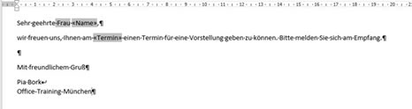 Sie können genauso wie bei einem Brief mit einer Anrede arbeiten, individuelle Felder einfügen und feste Texte schreiben. |