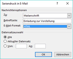 - Sendungen | Seriendruck starten: E-Mail-Nachricht