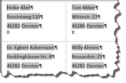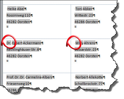 Adressaten mit und ohne Titel in einer Liste sind eigentlich kein Problem - bei der Kombination “Titel Vorname Nachname” wird das Titelfeld nur verwendet, wenn es auch einen Eintrag hat. Aber was ist mit dem Leerschritt zwischen Titel und Vorname?
