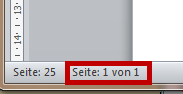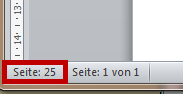 Eingestellt ist für die Seitenzahl: "Beginne mit 25"; Cursor steht auf der ersten Seite des Dokuments Formatierte Seitenzahl: 25 Seitenzahl: |