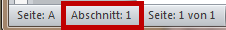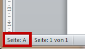 Eingestellt ist für die Seitenzahl: Format Großbuchstaben; Cursor steht auf der ersten Seite des Dokuments Formatierte Seitenzahl: A Seitenzahl: |