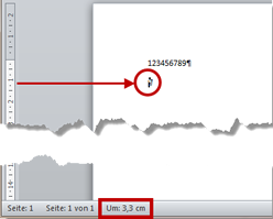 Position des Cursors vom oberen Papierrand - hier 3,3 cm. Gemessen wird nicht vom Seitenrand, sondern von der Papierkante. |