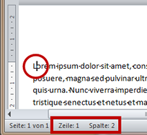 | Spalte | Zeichen, vor dem der Cursor steht Dabei gilt die Position vor der der Cursor steht - hier steht der Cursor vor dem zweiten Buchstaben, also "Spalte 2" |