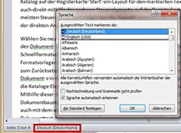 Sprache für die Rechtschreib-prüfung; ein Klick öffnet den Dialog "Sprache".