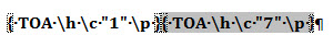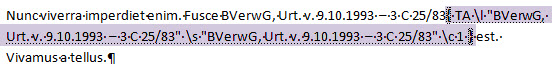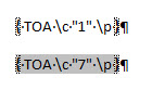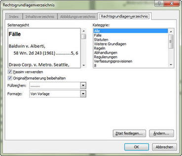 Pro Kategorie wird ein eigenes Feld TOA (table of authorities) erzeugt.