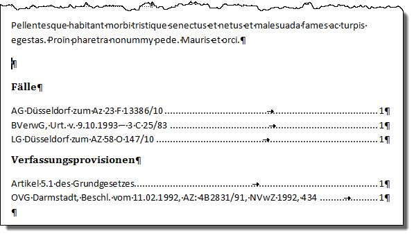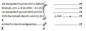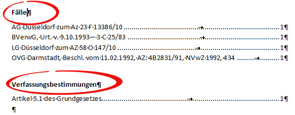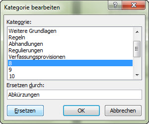 Ich hoffe, ich habe jetzt oft genug betont, dass die Kategorien nicht im Dokument gespeichert sind. Wenn Sie ein Rechtsgrundlagenverzeichnis erstellen und die automatischen Überschriften belassen, gibt es auf fremden PCs beim Aktualisieren unter Umständen ein Problem. Aus Ihrer Kategorie "Abkürzungen" wird auf dem anderen die Kategorie "8" - oder ein Name, den der andere dort verwendet hat.