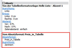 Die Absatzformatvorlage "Preis_in_Tabelle" hat aber keinen Hinweis auf die Ausrichtung. | |