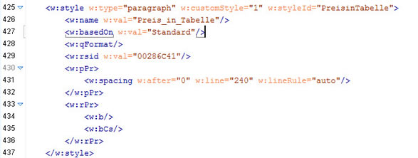 - Die Absatzformatvorlage "Preis_in_Tabelle" sagt nichts mehr zur Ausrichtung - ein Merkmal "ich bin normal linksbündig" wird nicht vergeben