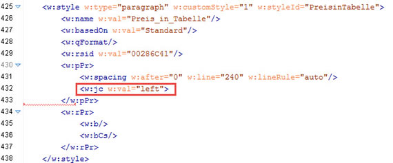 Wenn man die Ausrichtung von Hand hinzufügt, wird sie auch berücksichtigt. Dazu muss in das Tag <w:pPr> die Zeile <w:jc w:val="left"> ergänzt werden. |