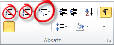 Um die Nummerierung anzupassen, stellen Sie den Cursor in die erste Überschrift und gehen Sie auf das Symbol "Liste mit mehreren Ebenen" - verwenden Sie niemals die einfache Nummerierung, auch wenn Word das Symbol noch so einladend markiert.