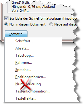 - Verwenden Sie niemals den Befehl "Nummerierung" aus der Formatvorlage "Überschrift".
