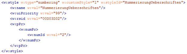 XML-Sicht: numberingStyle