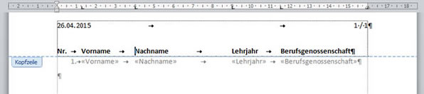Mit der gleichen Liste habe ich dann weitergearbeitet und ein Verzeichnis mit Seminartitel in der Kopfzeile erstellt.