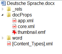 Im Ordner docProps finden Sie mindestens die beiden Dateien core.xml und app.xml. Beide beinhalten Einträge, die Sie in den Dateieigenschaften sehen können. |