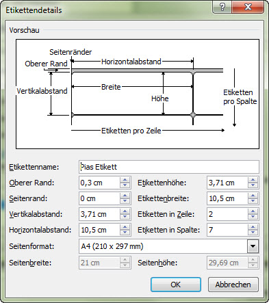 Das Seitenformat ist schließlich A4, wenn die Etiketten auf einem DIN-A4-Bogen stecken.