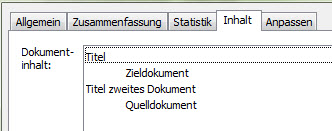Rechts sehen Sie den "Titel" mit dem Eintrag aus dem Word-eigenen Feld "Titel". Darunter "Titel zweites Dokument" mit einem Wert.