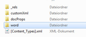 Öffnen Sie das ZIP-Archive im Windows-Explorer oder mit einem Programm, das ZIP-Archive darstellt. Öffnen Sie den Ordner "word".