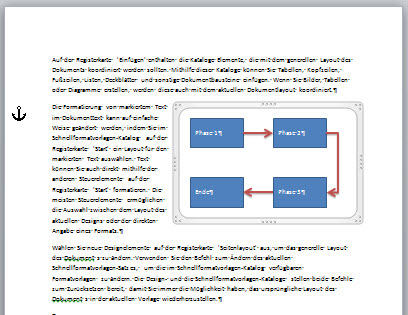 Im Zeichenbereich gibt es einen Vorteil und einen Nachteil. Nur im Zeichenbereich funktionieren Linien und Pfeile als Verbindungslinien wie in PowerPoint; allerdings können im Zeichenbereich Objekte nicht mehr angeordnet werden - das Angleichen von Abständen beispielsweise funktioniert dort nicht.